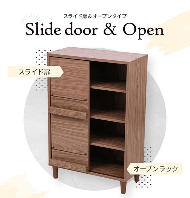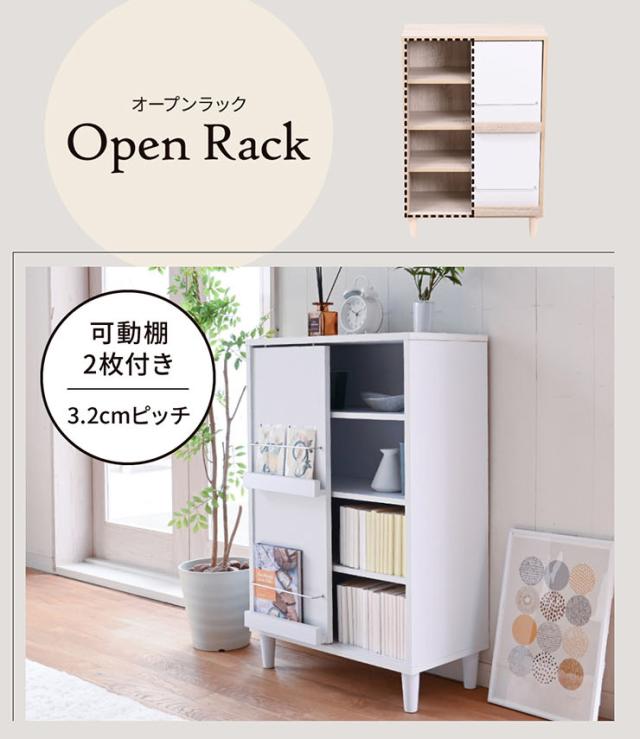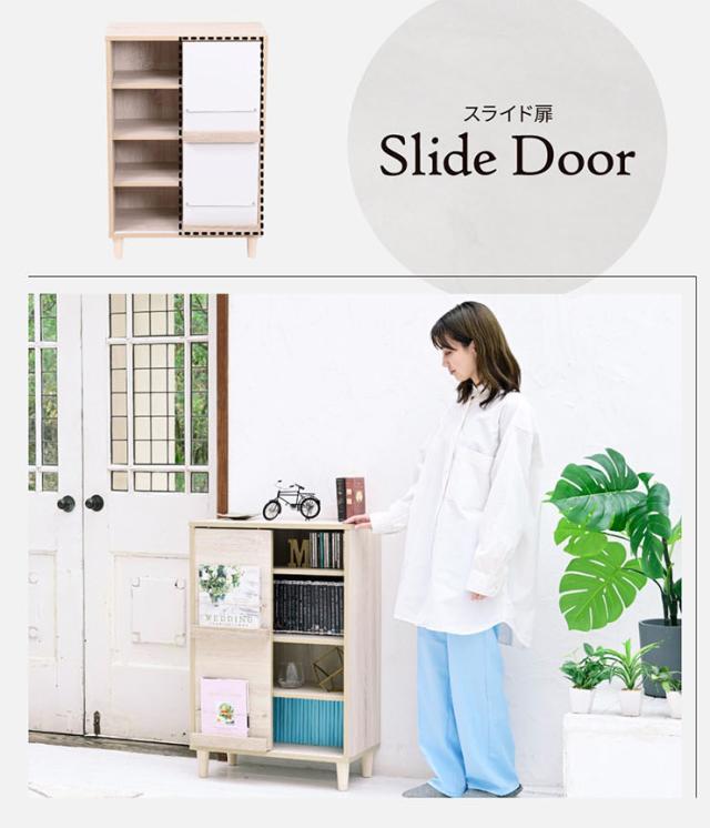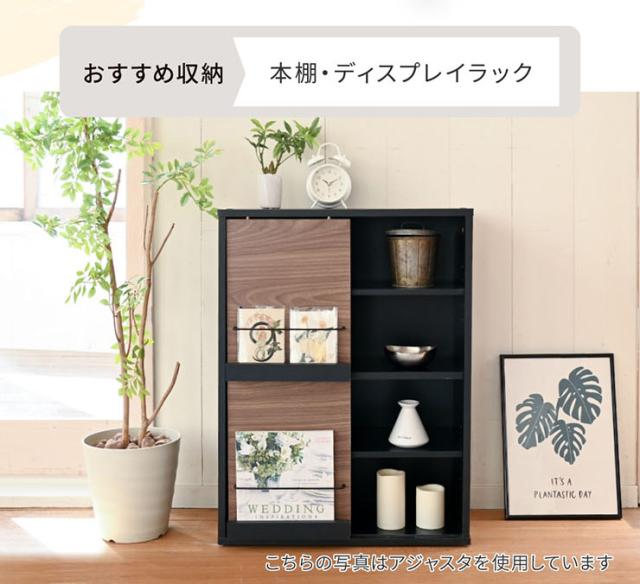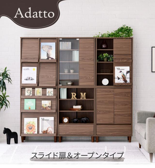 ディスプレイラック スライド扉&オープンタイプ Adatto 幅60cm 5色対応 ラック チェスト リビングチェスト キャビネット リビング収納 収納棚 可動棚 木製 本棚 書棚 食器棚 小物収納 おしゃれ シンプル
