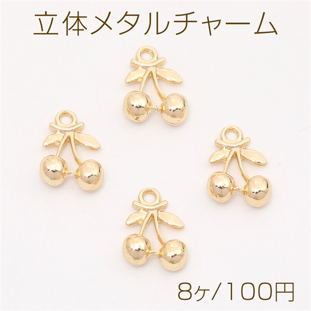 立体メタルチャーム さくらんぼ カン付き ゴールド 11×14mm(8ヶ)