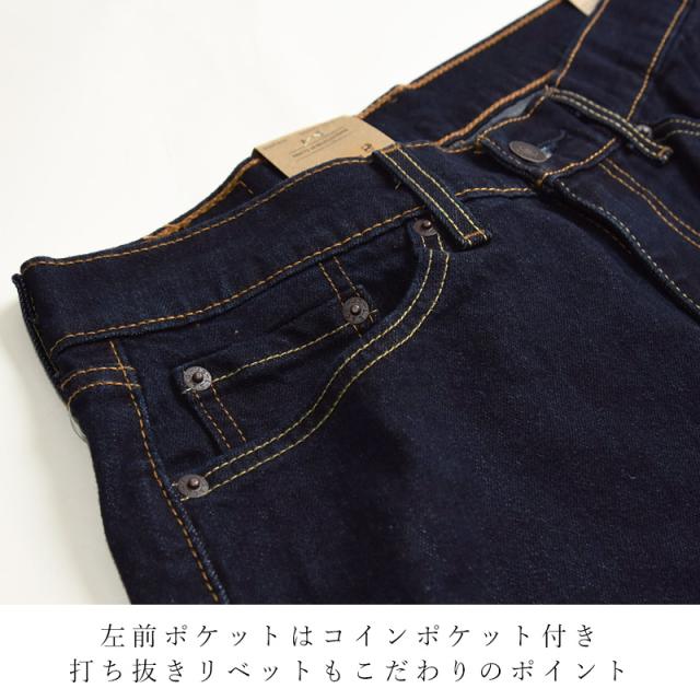 素材は程良い厚さのストレッチデニムを使用。伝統のツーホースパッチや、細部までポイントを押さえた作り込みが“Levi's”の歴史を感じさせてくれます。シルエットは股上が普通で、腰回りに少しだけ余裕を持たせ、太もも・ヒザからスソにかけてかなり細く作られた スキニーフィット。従来のスキニーコアの方にはもちろん、今までのスリムの細さでは物足りないという方にも十分満足していただける1本です。