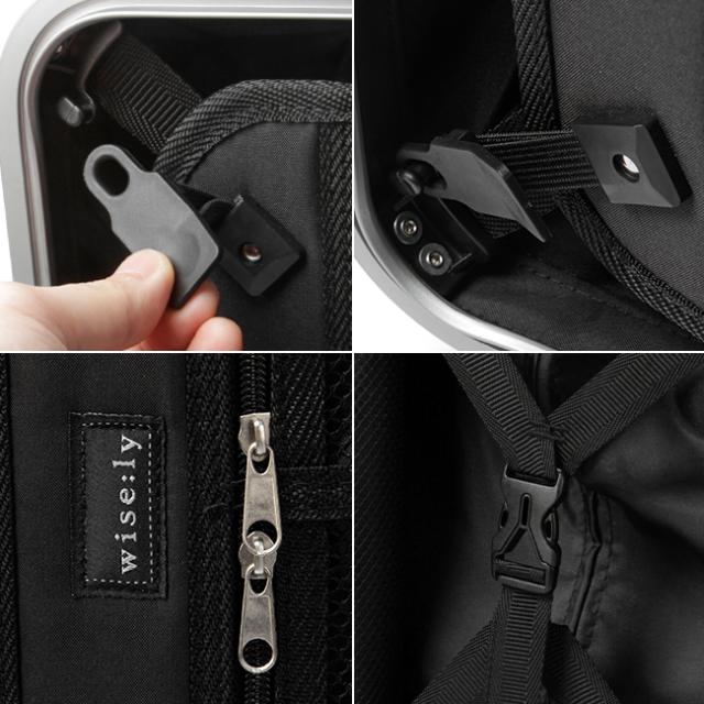 | 複雑に変化する時代の傾向やニーズに応え、機能性・デザイン・価格のバランスに優れた価値あるアイテム作りを追求し続けるブランド “wise:ly(ワイズリー)”。「賢明に、抜けめないの意味」から、リーズナブルな価格ながら、様々な機能を兼ね備えた、家族で使いまわししやすいベーシックなデザインのスーツケースが登場。 ●フレーム開閉タイプで開閉が楽にでき、セキュリティ面も安心 割れ物・精密機械の収納にも効果を発揮 ●使い勝手の良い、ワンタッチ開閉式のTSAロック。 ●ショック吸収サスペンション・ストッパー機能付き双輪キャスター 走行性・安定性抜群で、電車やバス移動、旅行の内にも便利 ●ボディ表面はキズが目立ちにくいシボ加工 ●高級感のあるコーナーパッドをアクセントに装備 耐久性を向上させデザインのアクセントに |