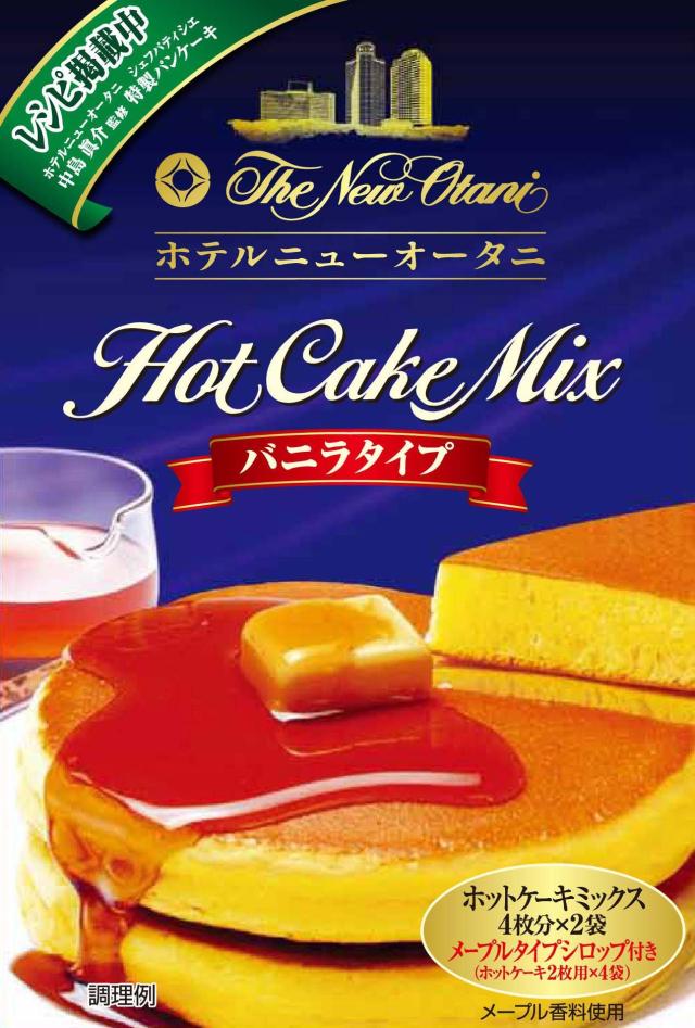 バニラの香りとふっくらしっとりとした焼き上がりが楽しめる、ホテルニューオータニブランドのホットケーキミックスです。