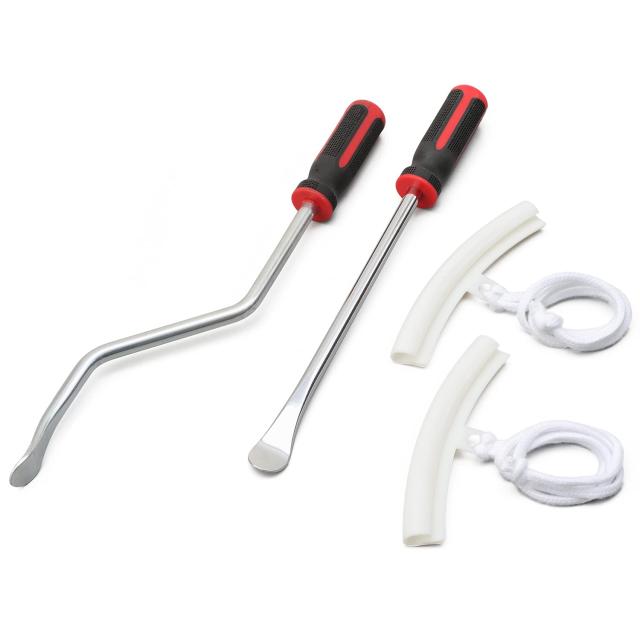 ストレートタイプのタイヤレバーでは困難だった作業を解消。幅広タイヤに使いやすいクランクタイプタイヤレバーをセットにしました。140サイズ以上のタイヤ交換に最適です。