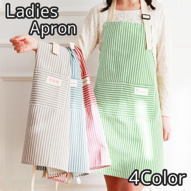 エプロン 前掛け シンプル 女性 婦人 レディース カフェエプロン 防汚 ボーダー ストライプ お洒落 可愛い カジュアル シン