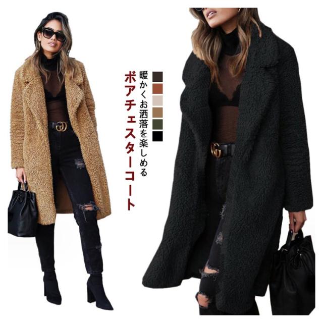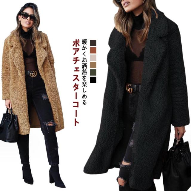 | 暖かくお洒落を楽しめるボアチェスターコート 秋冬の定番アウターとなるボアフリースロングコート トレンドを抑えたゆったりしたシルエット、インナーを問わずご着用いただけます さっと羽織って暖かいボアアウターです | |