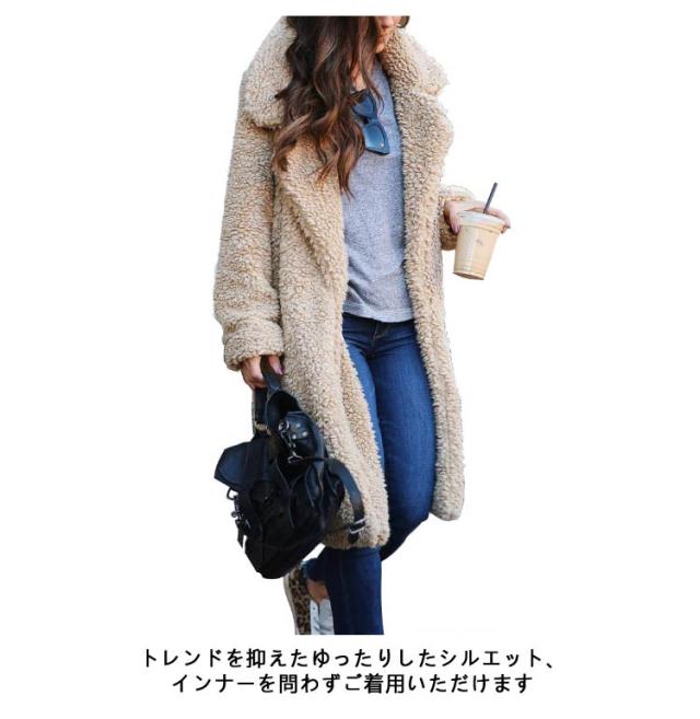 ロング ボアコート チェスターコート ボアコート アウター ロングコート サイドポケット カジュアル オーバーサイズ 体型カバー シープボア調 フェイクウール テーラード 羽織り レディース ロング丈 防寒 暖か サイズ 春 秋