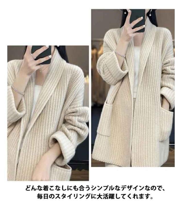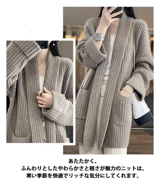 厚手 ロング レディース 秋冬 ロングカーディガン 長袖 ロングカーディガン アウター コート ニット ロングコート セーター 羽織り ゆったり コーディガン ポケット付き
