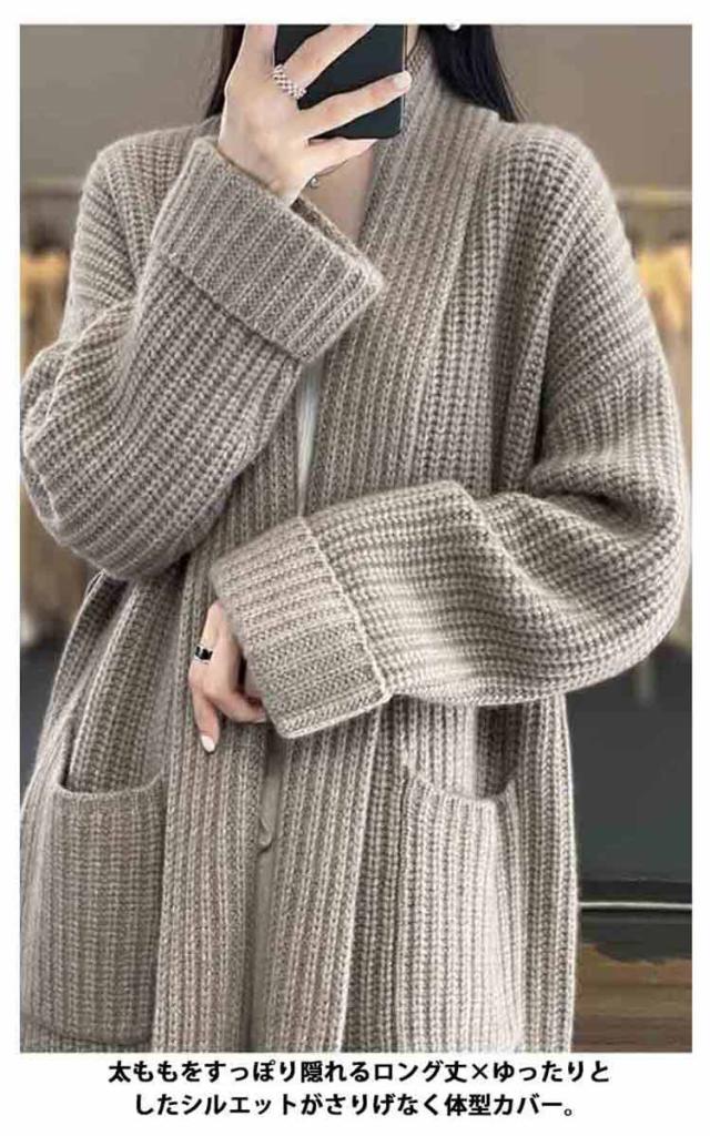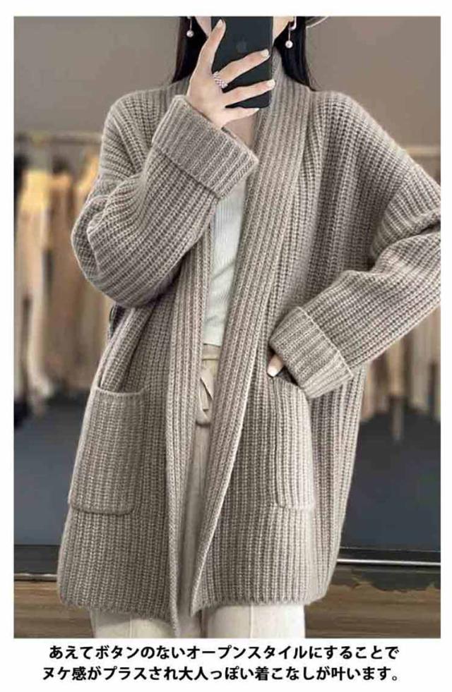 | サッと羽織るだけでしっかり防寒できるロングカーディガン。 あたたかく、ふんわりとしたやわらかさと軽さが魅力のニットは、寒い季節を快適でリッチな気分にしてくれます。 太ももをすっぽり隠れるロング丈×ゆったりとしたシルエットがさりげなく体型カバー。 あえてボタンのないオープンスタイルにすることでヌケ感がプラスされ大人っぽい着こなしが叶います。 どんな着こなしにも合うシンプルなデザインなので、毎日のスタイリングに大活躍してくれます。 | |