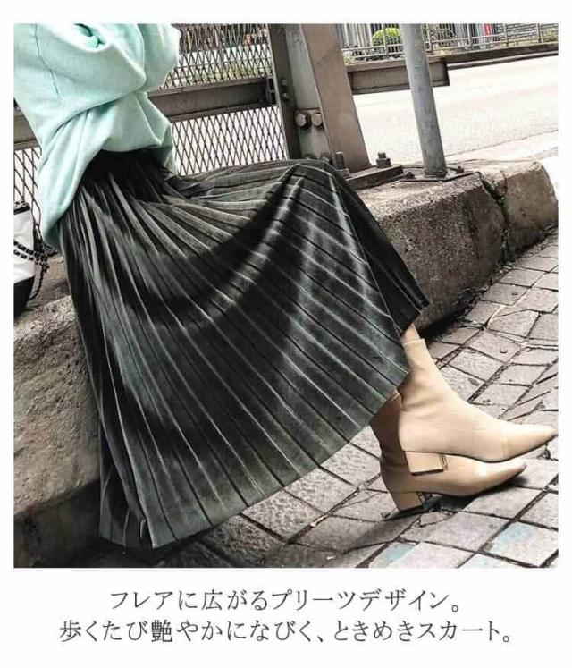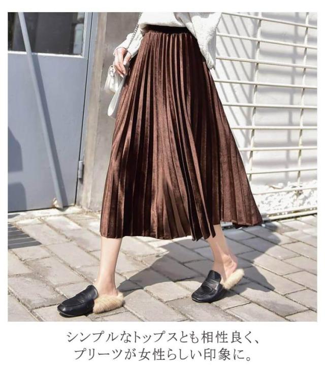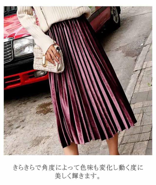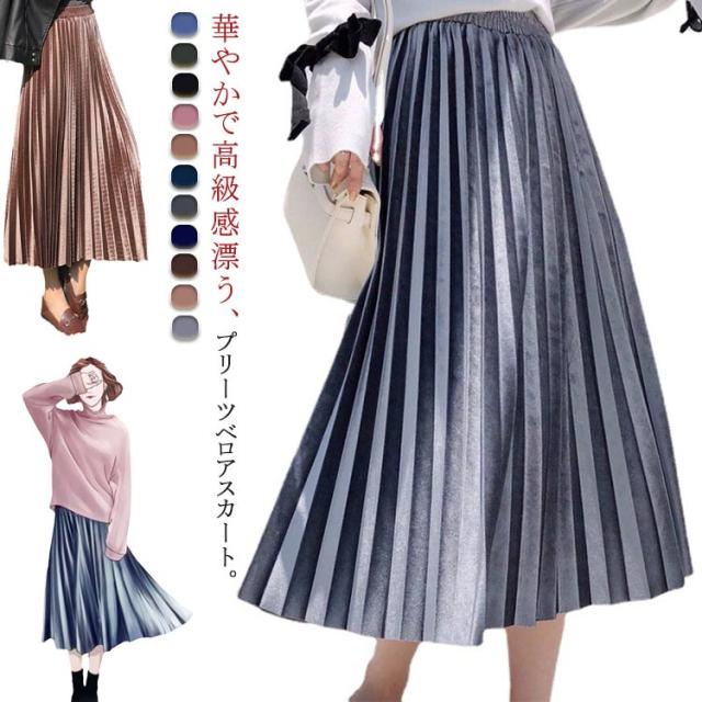 ミモレ プリーツ マキシ プリーツスカート プリーツスカート ハイウエスト ベロアスカート スカート レディース ロング丈 秋冬 ベロア ボトムス aライン オフィスカジュアル きれいめ 大人可愛い ロングスカート 春 秋 冬