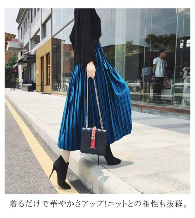 | 華やかで高級感漂う、プリーツベロアスカート。 フレアに広がるプリ一ツデザイン。歩くたび艶やかになびく、ときめきスカ一ト。 艶のある光沢感が上品で高見え!一気にドレッシ一な印象へと格.上げしてくれます。 きらきらで角度によって色味も変化し動く度に美しく輝きます。 シンプルなトップスとも相性良く、プリーツが女性らしい印象に。 着るだけで華やかさアップ!ニットとの相性も抜群。 | |