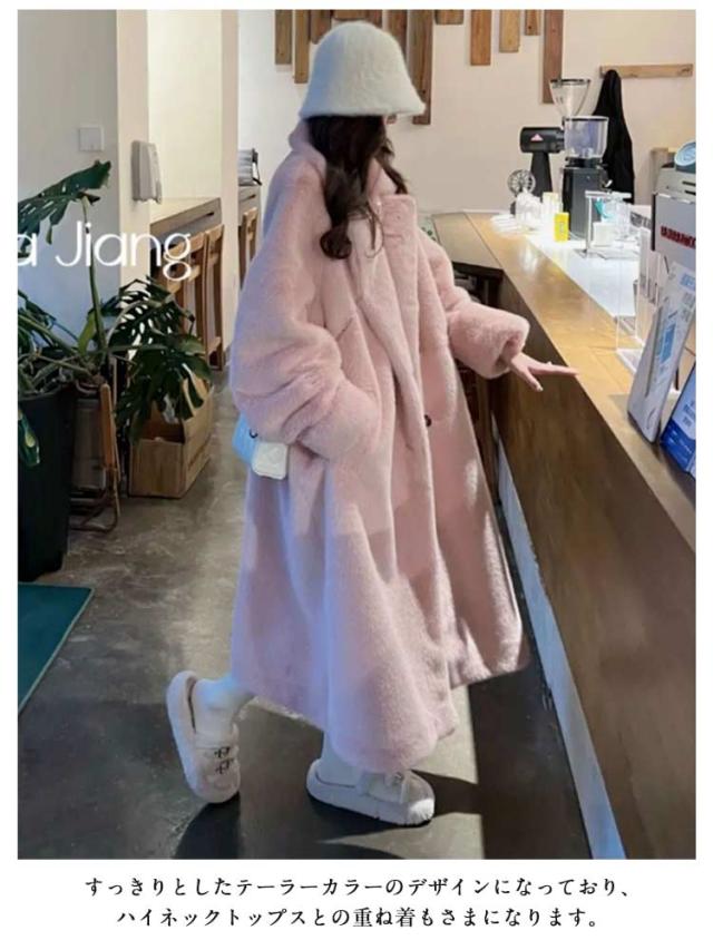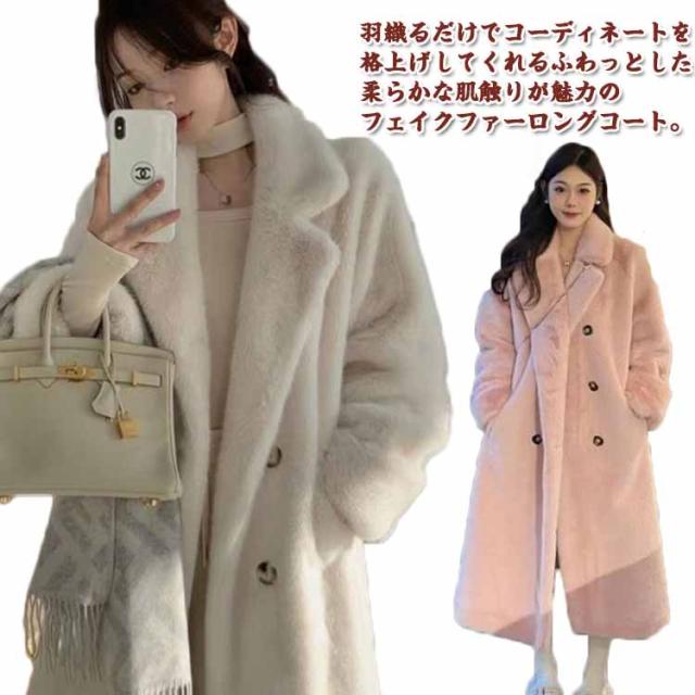 コート 冬服 暖かい ボリュームファーコート コクーン カジュアル 冬アウター レディース フェイクファー ボリュームファーコート フワフワ ムートンコート ロング丈 ふわふわ フードコート ファーコート あたたかい アイボリー ピンク