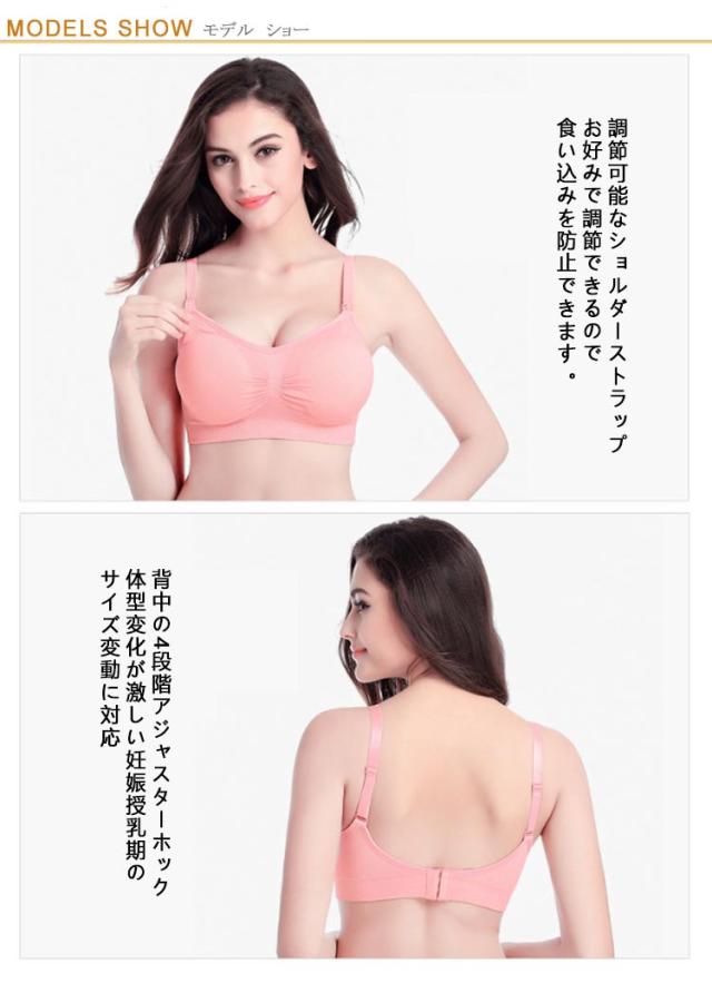 | 授乳ブラ 前開き肩スナップでワンタッチ簡単授乳! 調節可能なショルダーストラップ お好みで調節できるので食い込みを防止できます。 背中の4段階アジャスターホック 体型変化が激しい妊娠〜授乳期のサイズ変動に対応 幅広アンダーゴム&延長ホックでつわりでも苦しくない | |