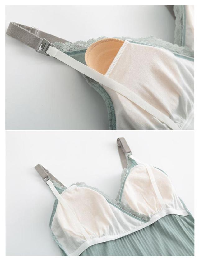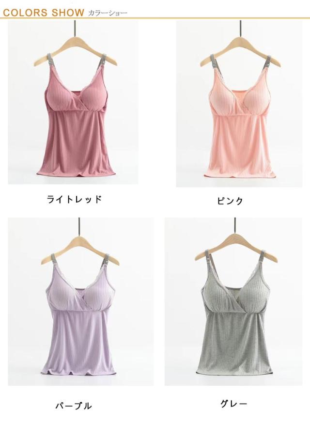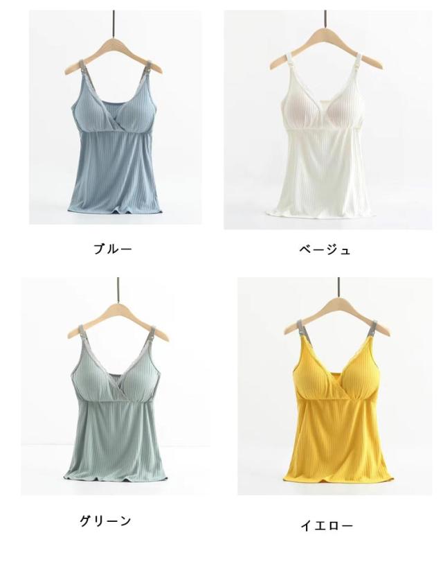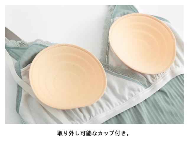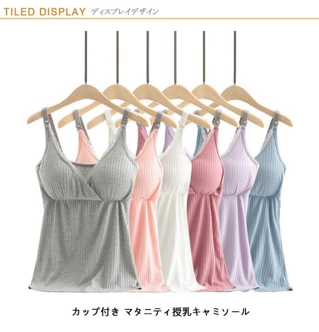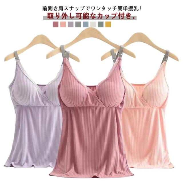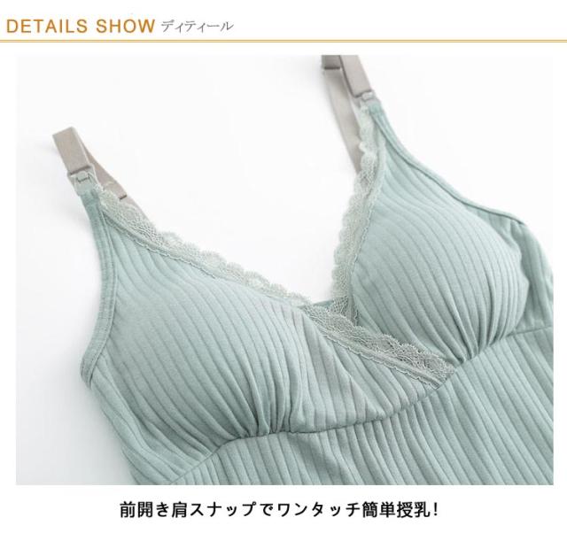 | カップ付き マタニティ授乳キャミソール 前開き肩スナップでワンタッチ簡単授乳! 取り外し可能なカップ付き。 | |