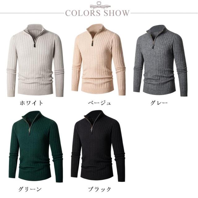 メンズ ニットセーター ハーフジップ メンズニット ハーフジップ ニットセーター セーター 秋服 細身 ニット メンズ ニット おしゃれ ハーフジップ 送料無料 スリム リブ編み シンプル 無地 ストライプ ブラック ホワイト グレー 黒 白