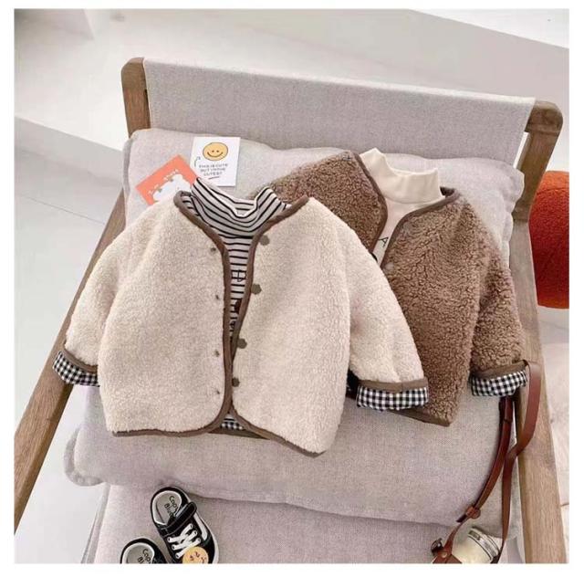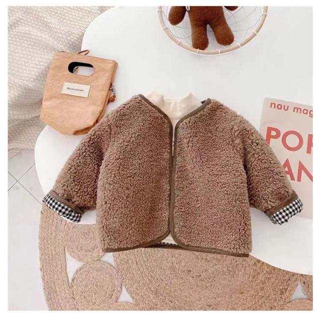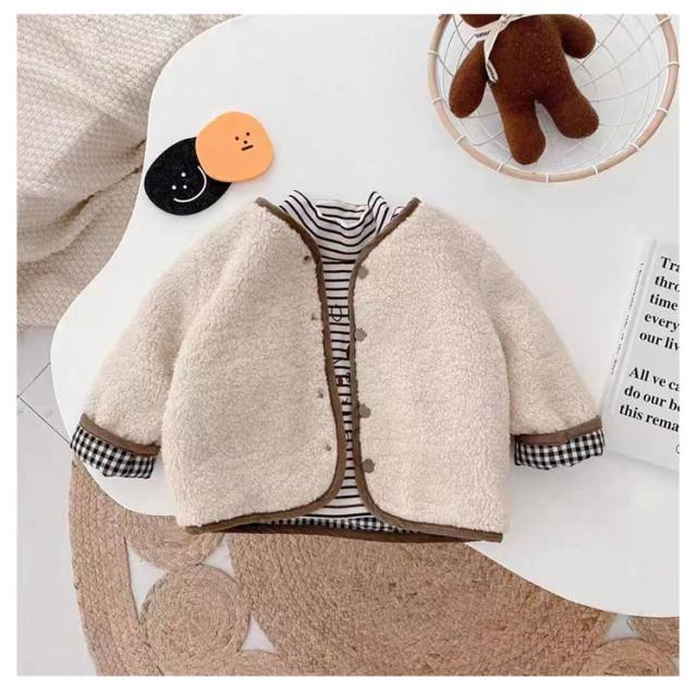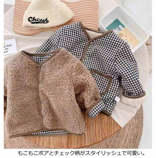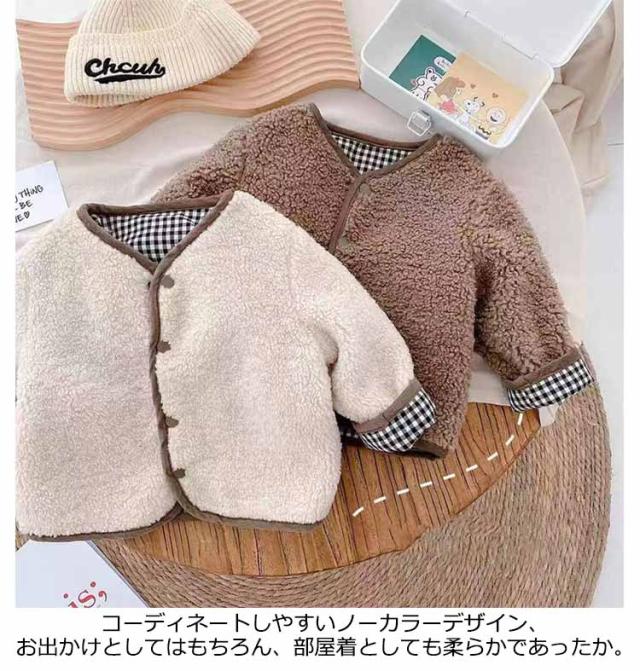ボアジャケット 子供服 部屋着 ジャケット アウター ベビー服 ジャケット もこもこ 韓国 韓国 無地 リバーシブル 韓国 出産祝い プレゼント 寒さ対策 ノーカラーコート 秋冬