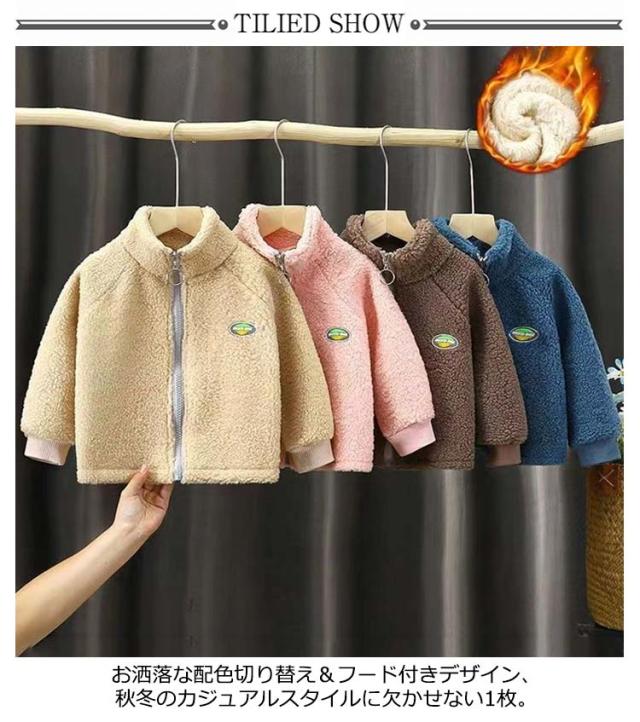 フリース ジャケット アウター ボーイッシュ 防寒 男の子 子供服 ジップアップ ファー ショート丈 コート ジャケット ブルゾン もこもこ ボア 軽い 親子コーデ 女の子 おしゃれ モカ 春 秋 冬