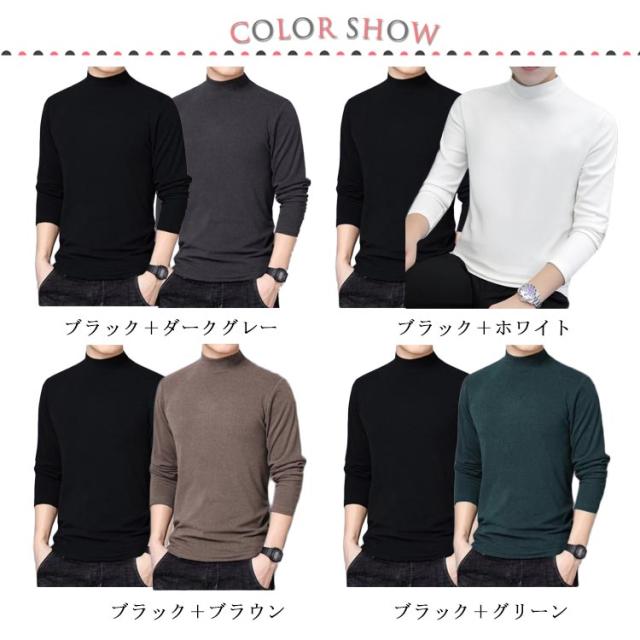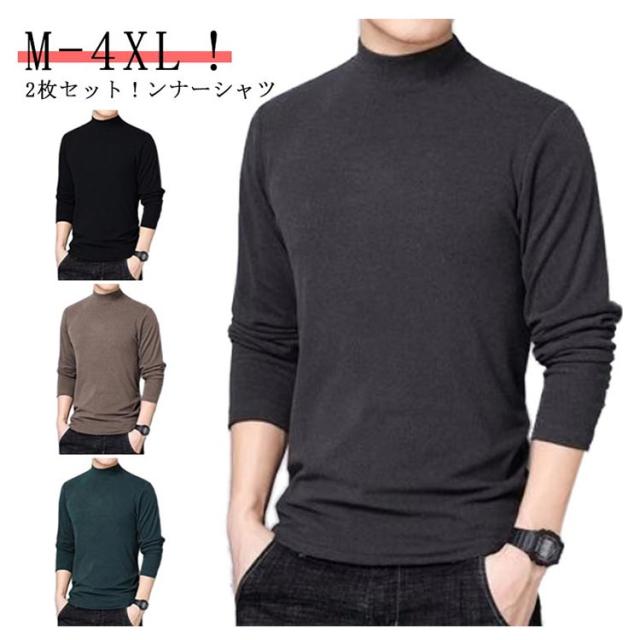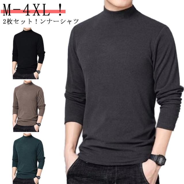 インナーシャツ 送料無料 インナー 秋冬 防寒着 タートルネック メンズ ヒートテック 起毛 肌着 送料無料 あったか ヒートインナー あったかインナー ロンT Tシャツ カットソー 2枚セット ハイネック 防寒 裏起毛 保温 極暖 吸湿発熱 インナー ストレッチ 無地