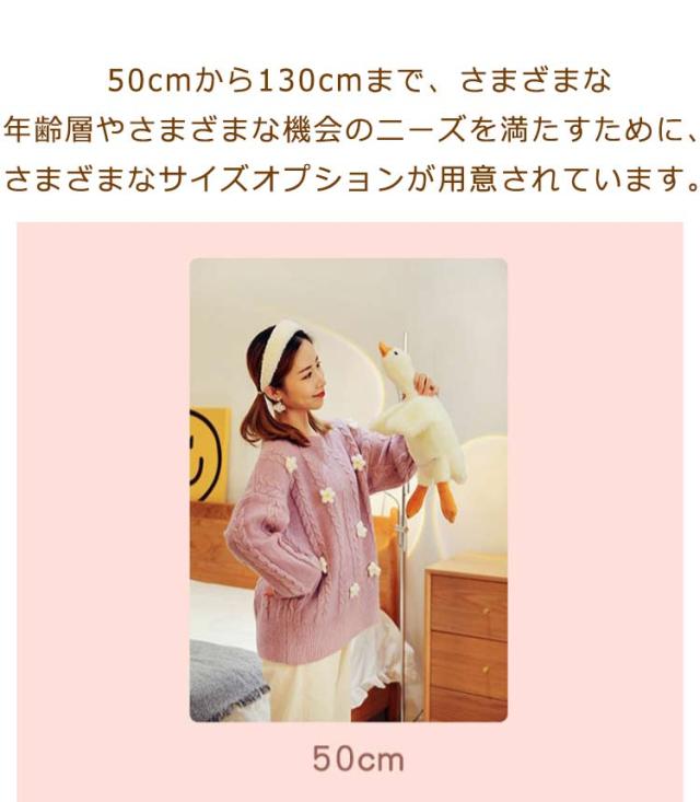 | 表面はしなやかで肌触り良い生地で、柔らかさと高弾力性を兼ね備えた PP綿を採用し、しっかり体を支えてくれます。 50cmから130cmまで、さまざまな年齢層やさまざまな機会のニーズを満たすために、さまざまなサイズオプションが用意されています。 ベッドの上でも、ソファの上でも、車の中でも、お好きなサイズをお選びいただけます。 抱き枕、腹ばい枕、クッション、ネックピロ、子供おもちゃ、置物ーなどとして使用できます。 大きい白い鵞鳥抱き枕は柔らかくて快適で、誕生日、子供の日、バレンタインデー、クリスマス、新年などの祝日に適して、贈り物として子供、恋人、家族、友達などを贈ります。 | |