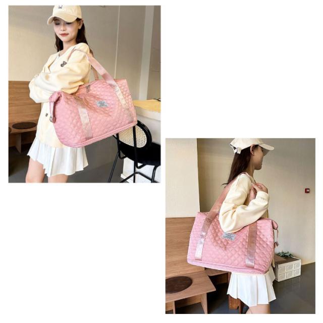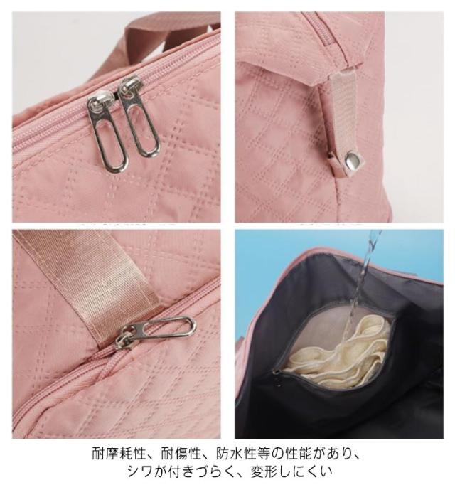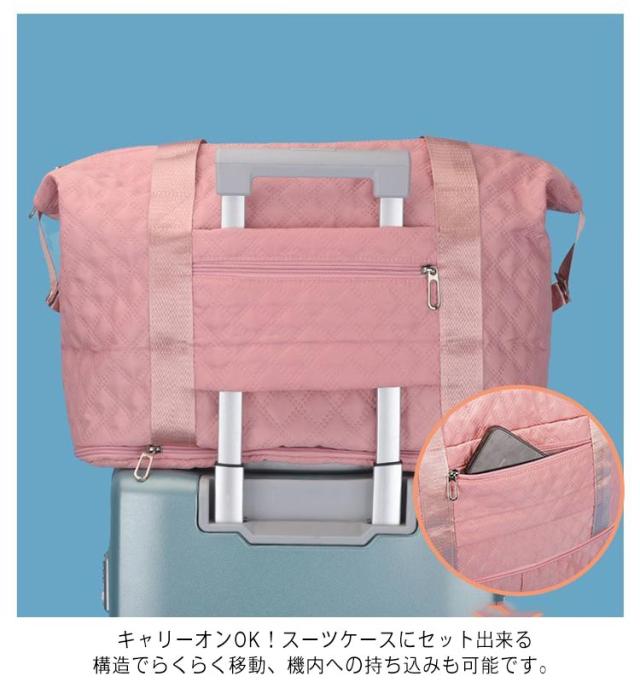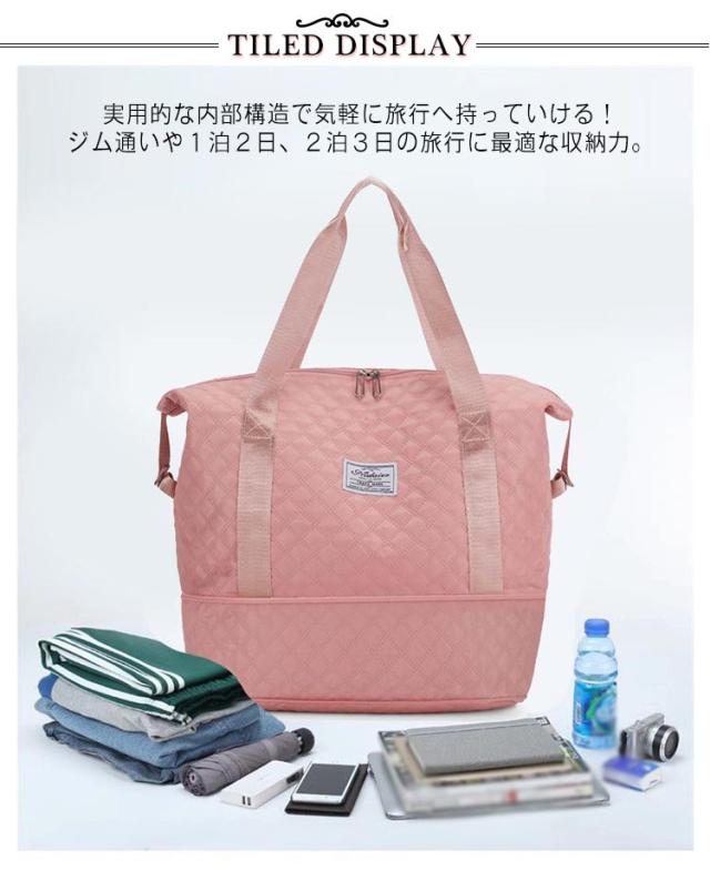 | デザイン性、機能性でお出かけが楽しくなる!かわいいキルティングボストンバッグ。 実用的な内部構造で気軽に旅行へ持っていける!ジム通いや1泊2日、2泊3日の旅行に最適な収納力。 濡れたタオル、汗のついた衣類、洗面用具を入れることができ、お手入れが簡単で清潔に保てます 耐摩耗性、耐傷性、防水性等の性能があり、シワが付きづらく、変形しにくい 荷物が増えても安心!底面のファスナーを開けるだけで13cm広がる拡張機能付き。 畳んでコンパクトに変身!使用しない時は、コンパクトに収納できるので場所も取らず持ち運びに便利 キャリーオンOK!スーツケースにセット出来る構造でらくらく移動、機内への持ち込みも可能です。 | |