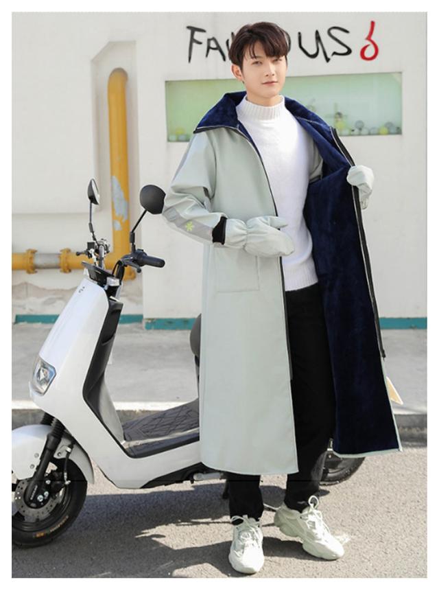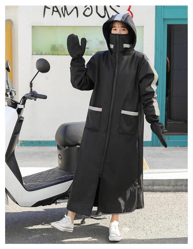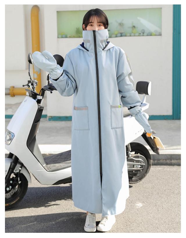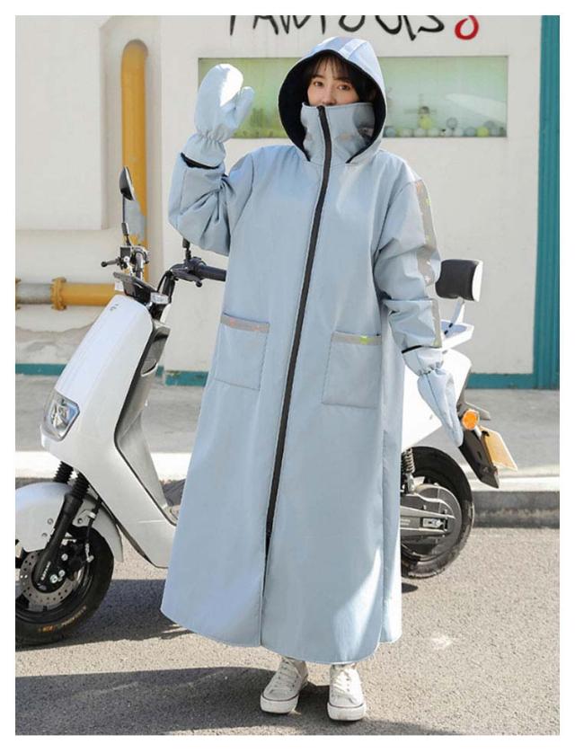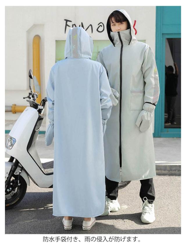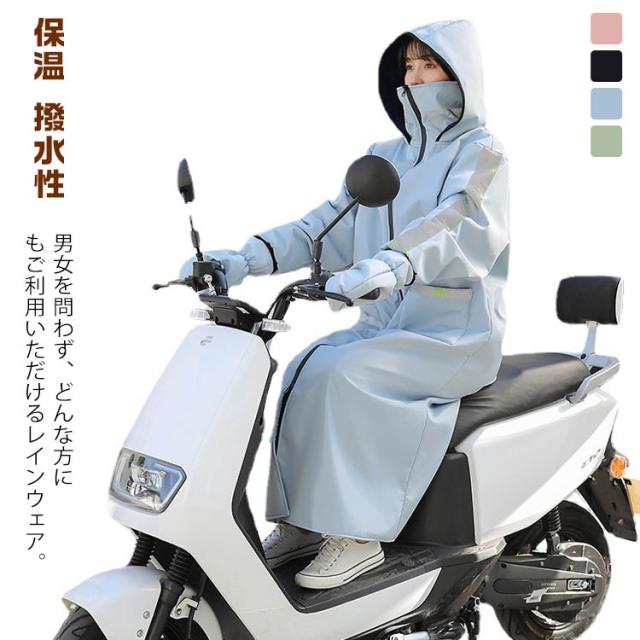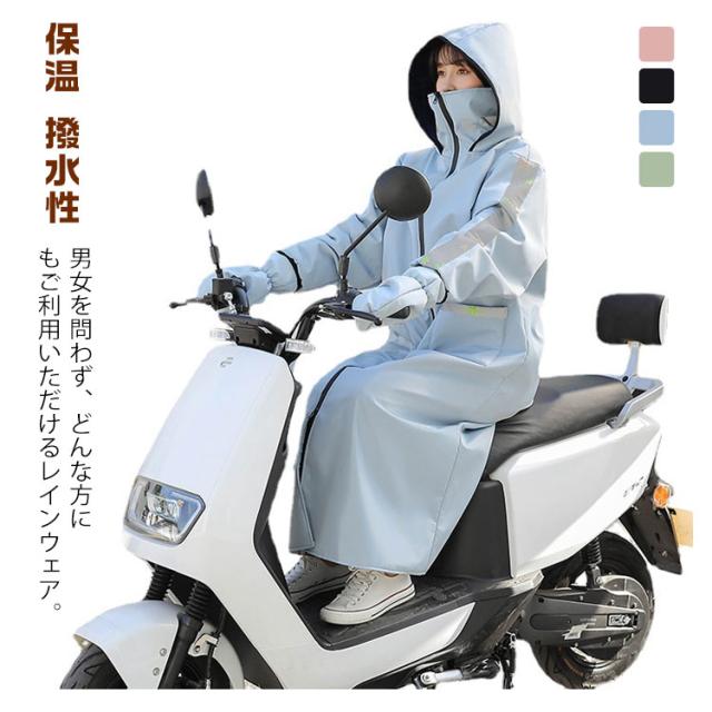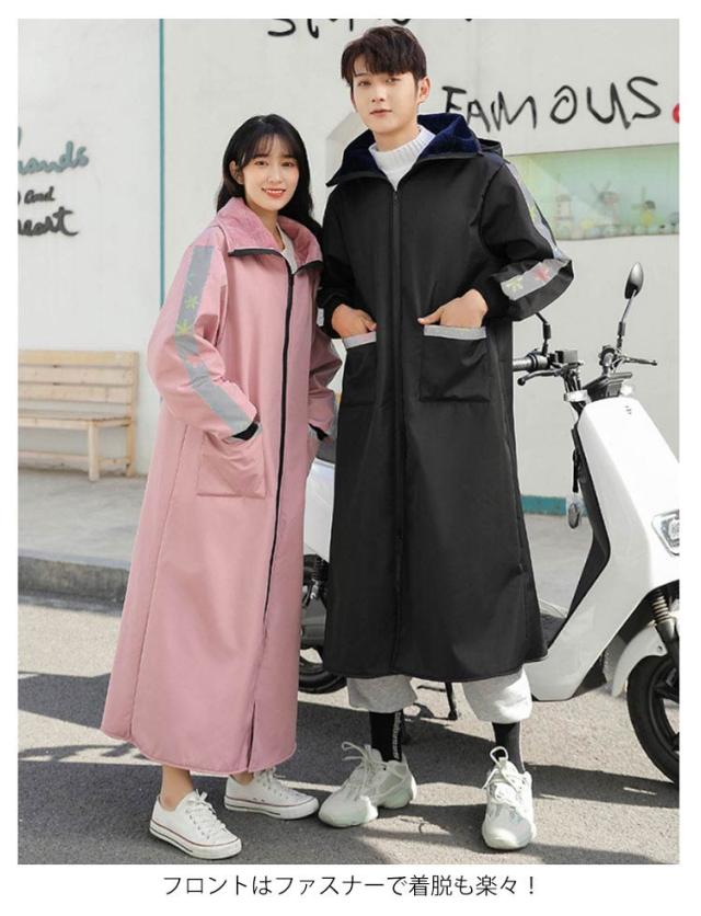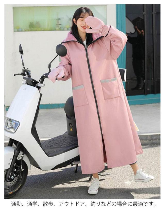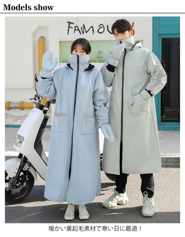 レインコート レインウェア バイクウェア 裏起毛コート 手袋付き ロング ジャケット 裏ボア フード付 反射テープ ポケット付き 防風 防寒 保温 撥水性 暖かい 電動バイク アウトドアジャケット 冷え取り 自転車 汎用 保温性抜群 秋冬 男女兼用 通学 通勤 釣り