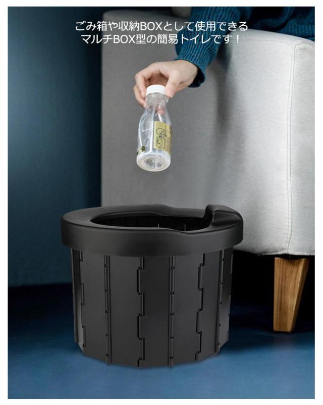 | どんな非常事態の際に、簡易トイレが活躍する防災用品です。 折り畳み式で車のトランクなどにも邪魔にならずに収納可能。 水洗いできるので、次回使うときまで清潔に保管しておくことが可能です。 エコプラスチックを使用し、耐久性に優れた丈夫な設計で、誰でも気軽に使用できる。 ごみ箱や収納BOXとして使用できるマルチBOX型の簡易トイレです! トイレとして使用するときは、このトイレの中に袋を入れておくと、トイレを清潔に保つことができます。 とても組み立てやすく、ゆったり座れるから大人も子供もOK。 自宅でもお出かけでも、大人も、お年寄りや子どもも使用可能です。 | |