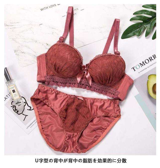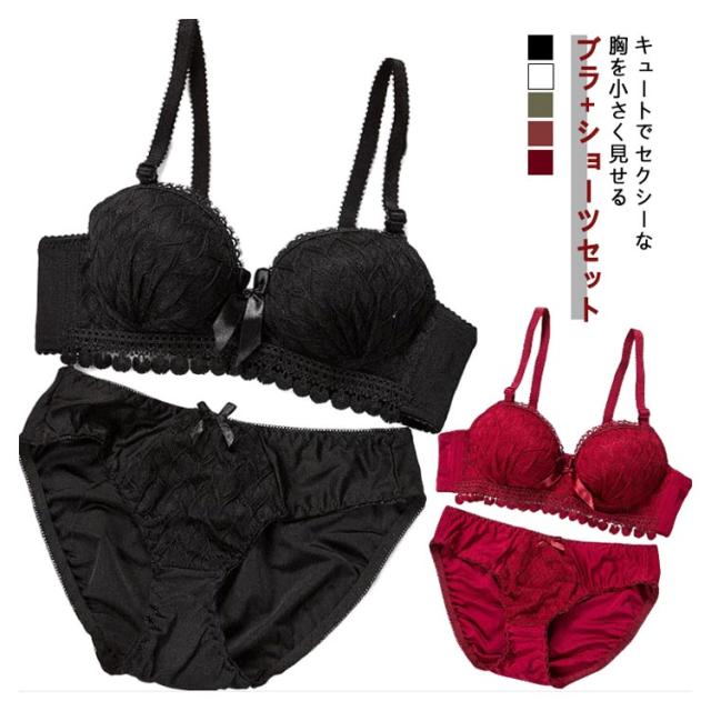 胸を小さく見せるブラ ショーツ 2点セット レース 補正ブラ 谷間 ブラ 小さく見せるブラジャー 脇高 ブラジャー ショーツ 上下セット ショーツセット かわいい レディース インナー 小さく見えるブラ ノンワイヤー ブラジャー ショーツ 春夏秋冬