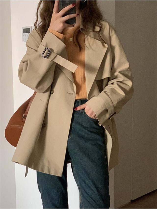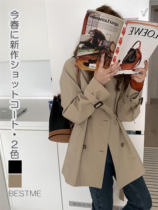 送料無料 トレンチコート レディース ショット ミディアム ダブルボタン コート スプリングコート アウター フォーマルコート ジャケット 春秋 就職 通勤 シンプル カジュアル コーディネート自由 カッコウいい キリっと スッキリ
