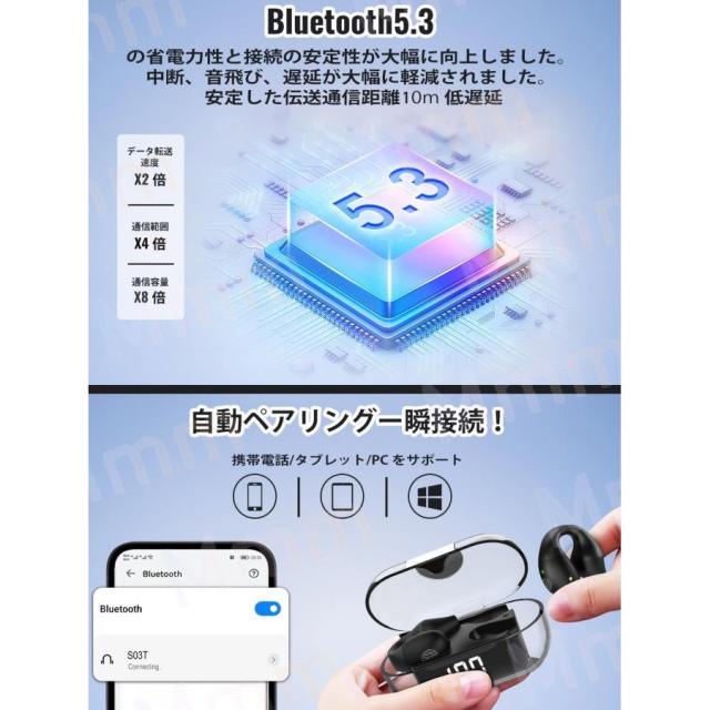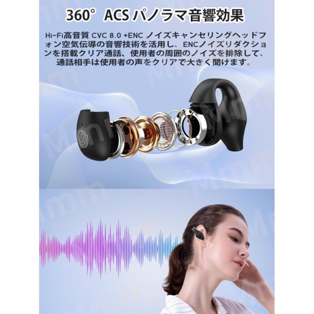 ワイヤレスイヤホン Bluetooth5.3 空気伝導イヤホンbluetoothイヤーカフ イヤホンイヤホン ワイヤレスHIFI音質オープンイヤー 音漏れ抑制ENCハイレゾ