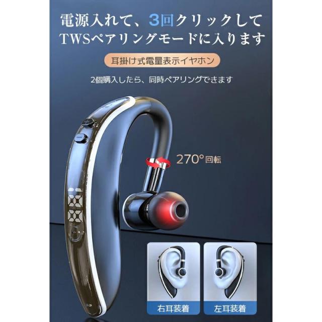 ワイヤレスイヤホン Bluetooth 5.3 片耳 ブルートゥースヘッドホン 耳掛け型 ヘッドセット 左右耳通用 軽量 高音質