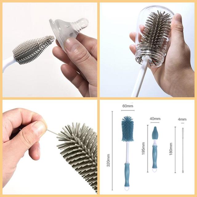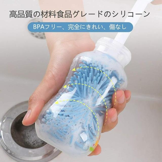 哺乳瓶乳首ブラシ ボトルブラシ 水筒 洗浄ブラシ シリコン ブラシセット 3点セット 360度回転 使いやすい 持ち運び ベビ用品 安全 安心
