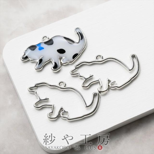 空枠 フレーム 猫 毛づくろい アクセサリー パーツ シルバー 23mm 2個 カン付 両面 チャーム ペンダントトップ レジン 型 枠 レジン枠 動物 問屋 レジン用 金属パーツ メタルパーツ メタルチャーム ハンドメイド資材 キャット さや工房 手作り アクセサリーパーツ 卸 おすすめ