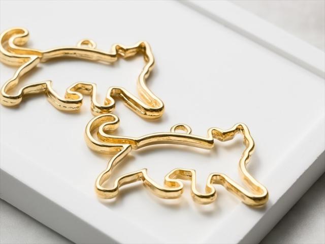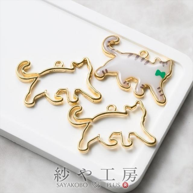 空枠 フレーム 猫 散歩 アクセサリー パーツ ゴールド 23mm 2個 カン付 両面 チャーム ペンダントトップ レジン 型 枠 レジン枠 動物 問屋 レジン用 金属パーツ メタルパーツ メタルチャーム ハンドメイド資材 キャット さや工房 手作り アクセサリーパーツ 卸 おすすめ