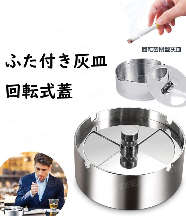 灰皿 ふた付き 大容量 ステンレス素材 卓上 屋外用 回転式蓋 密閉 密閉 卓上 客室 オフィス スタイリッシュ コンパクト 滑りにくい 煙と