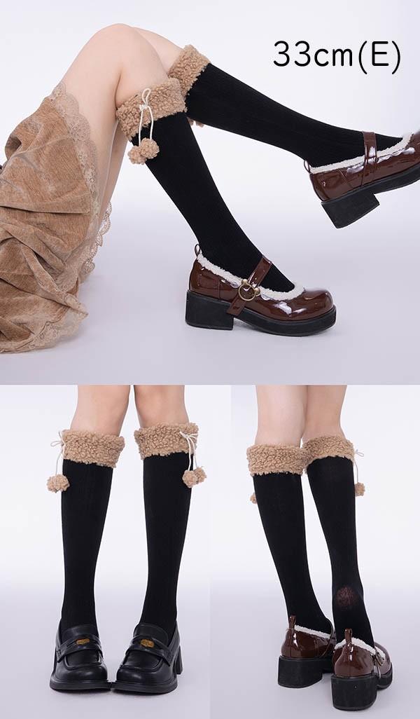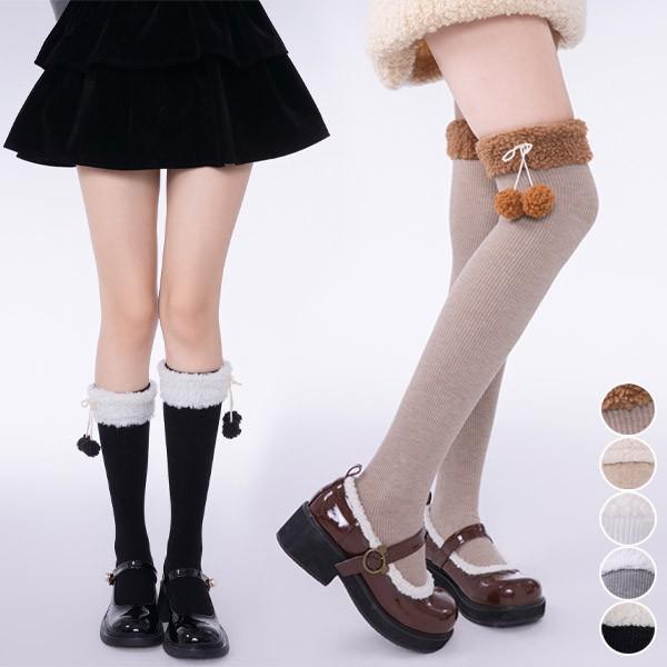 可愛い ロング靴下 ニットソックス 暖かい 厚手 春秋冬 日常 ロリータ ガーリー ガール イベント コスプレ 原宿系 ブラック ホワイト グレー ブラウン cm061t2t2l9