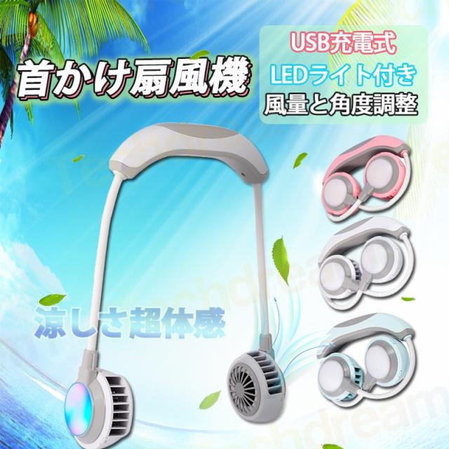 即納 扇風機 首掛け扇風機 卓上扇風機 ハンズフリー ミニ携帯扇風機 角度調整 羽根無し 三階段風量調節 ライト付き USB充電式 ポータブル 持ち運び 省エネ