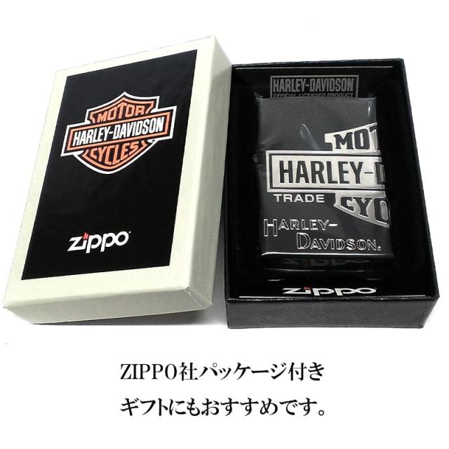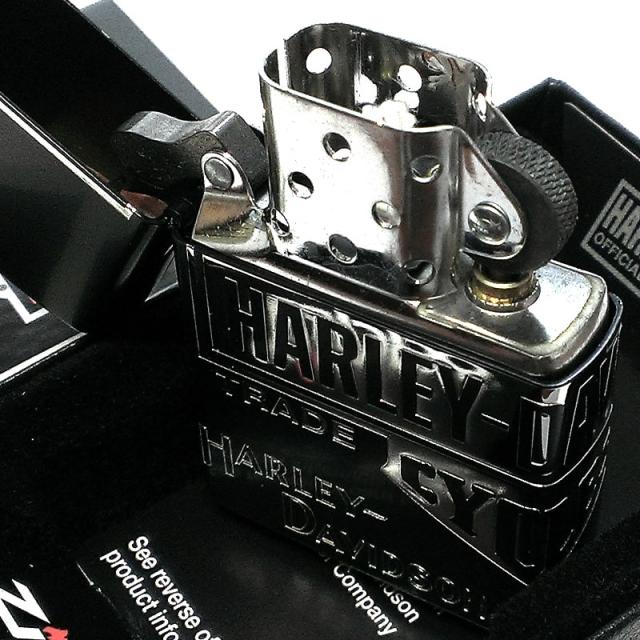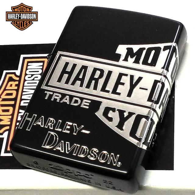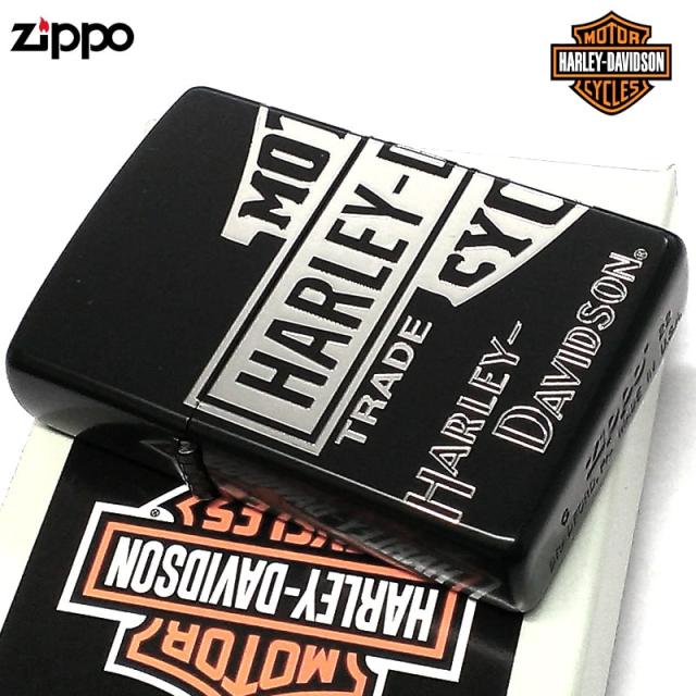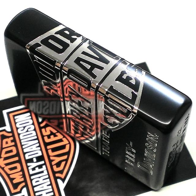 ZIPPO ハーレー ダビッドソン 3面彫刻 ロゴ ジッポ ライター マットブラック 黒 シルバーメッキ HARLEY-DAVIDSON 銀差し