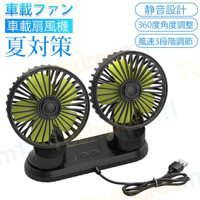 即納 車載ファン 車載扇風機 静音設計扇風機 充電式 USB 360度角度調整 風速3段階調節 双頭車載ファン ツーファン付き 自由自在調整可 風量調節 夏対策