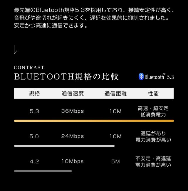 1.Bluetooth規格は5.3で安定かつ高速に通信できます。