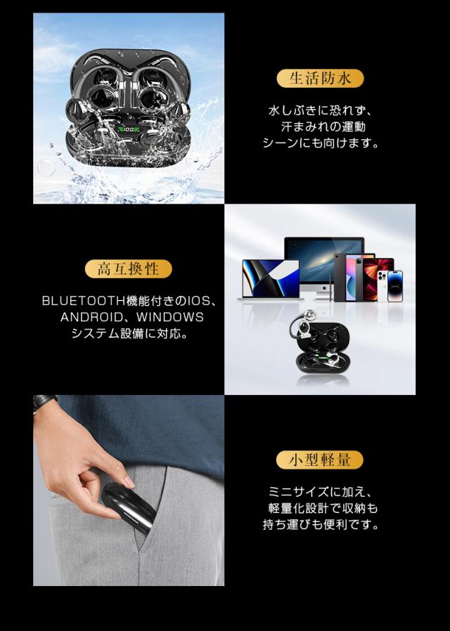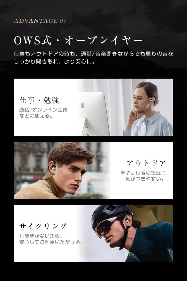 空気伝導ワイヤレスイヤホン OWS式 Bluetooth5.3 周囲の音が聞こえる 耳掛け 落ちにくい 防水防滴 HiFi 高音質 マイク内蔵 【PL保険加入済み製品・安心】