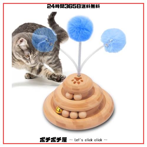 【Amazon.co.jp限定】猫おもちゃ ボール ねこ ペット用品 ゃらし玉遊び ぐるぐるタワー 竹製おもちゃ 鈴入りボール 玉、 知育玩具 運動不