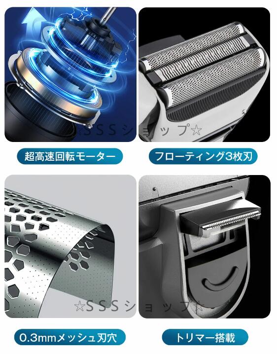 髭剃り 電気シェーバー メンズ シェーバー 電動 USB充電式 往復式 3枚刃 水洗い 完全防水 IPX7級 お風呂剃り 深剃り 電気 カミソリ