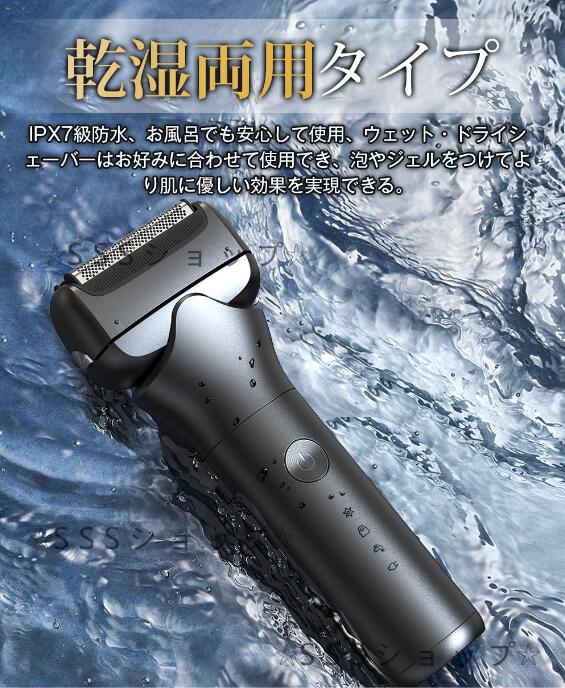 【乾湿両用タイプ】IPX7級防水、お風呂でも安心して使用、ウェット・ドライシェーバーはお好みに合わせて使用でき、泡やジェルをつけてより肌に優しい効果を実現できます。