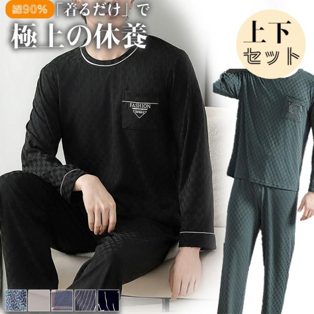 ポイント超超祭 2点購入で200円オフ中 パジャマ メンズ ルームウェア あったか 上下セット 寝間着 長袖 長ズボン 薄手 ゆったり ナイトウェア 大きいサイズ