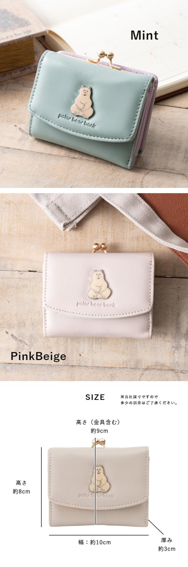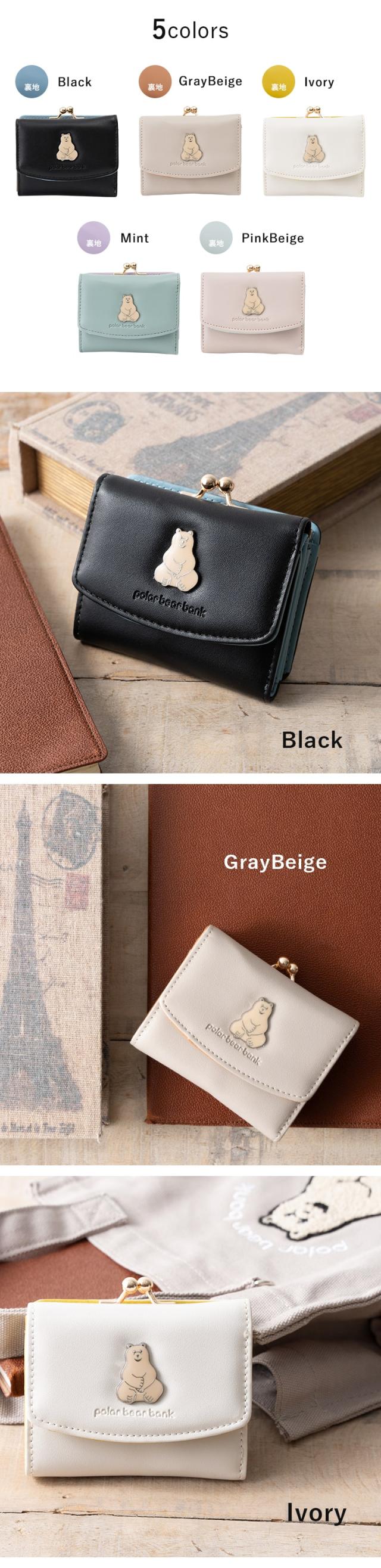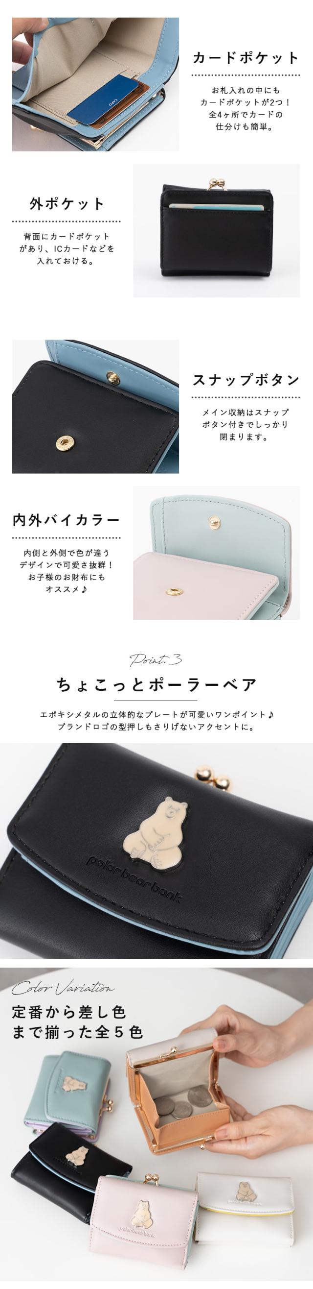 シンプルなデザインにポーラーベアのワンポイントが入ったがま口三つ折り財布。
