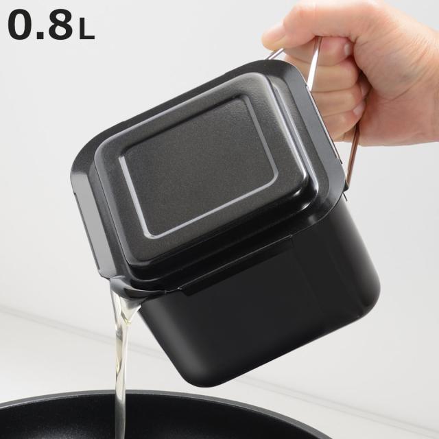 《 LH14558 0.8 油濾過 油 油濾し コシ網付き コンパクト 四角 注ぎやすい 酸化防止 清潔 ふっ素加工 お手入れ簡単 衛生的 フタ付き 蓋付き ふた付き 天ぷら 揚げ物 人気 便利 おすすめ 調理用品 料理道具 台所用品 調理小物 キッチングッズ キッチンアイテム キッチン小物 キッチン雑貨 黒 シック ブラック おしゃれ 》