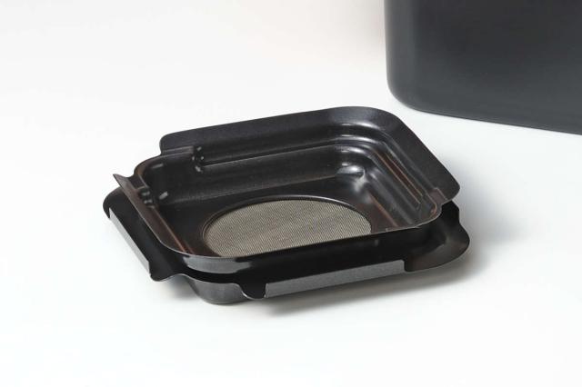 揚げ物に使用した油をスマートに保管できるポコフリットシリーズの角型オイルポットです。こしアミで不純物を取り除き、蓋をして酸化を防いで保存することができます。本体はふっ素樹脂加工されているので、使用後のベタベタする油のお手入れも簡単です。