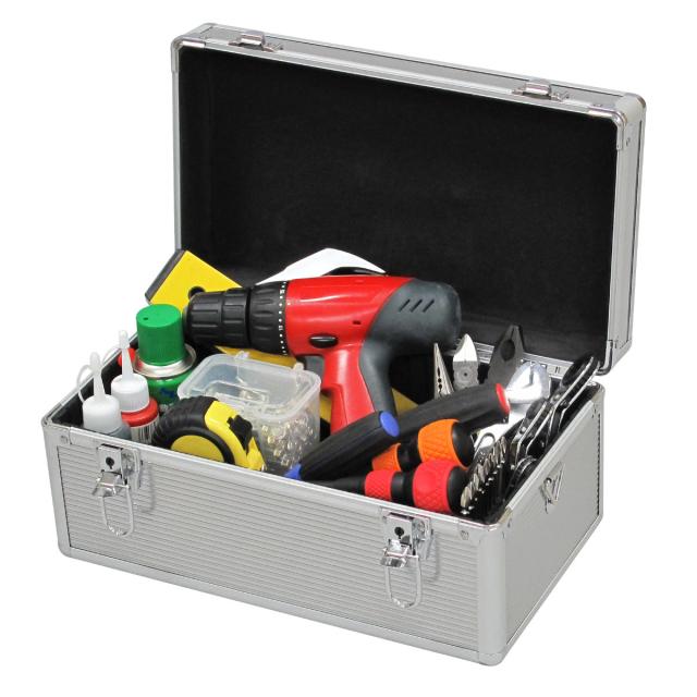 アルミの高級感と軽量、堅固さを兼ね備えたツールケースです。大工・作業工具や電動工具類はもちろん、文具やゲーム機の収納にも最適です。
