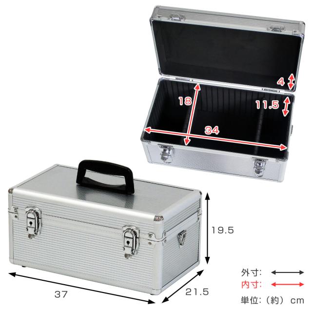 アルミケース 中型 小物入れ ( ボックス 収納 アルミ 小物収納 鍵付き 軽量 頑丈 幅37×奥行21.5×高さ19.5cm 収納ケース ツールケース ショルダーベルト 仕切り 工具箱 クッション材 文房具 ゲーム機 工具 アルミボックス )