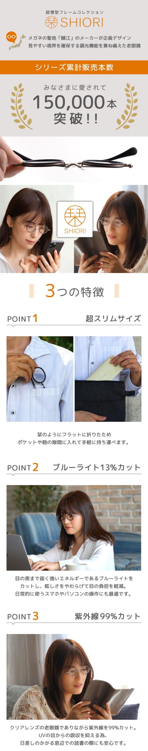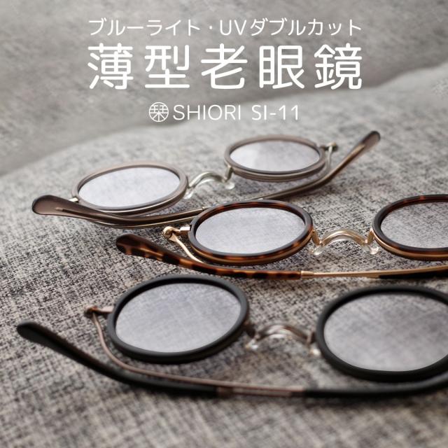 栞 SHIORI 薄型 老眼鏡 おしゃれ レディース メンズ セルワッパ ブルーライトカット 鯖江企画 軽量 コンパクト 折りたたみ リーディンググラス 専用ケース付き SI-11
