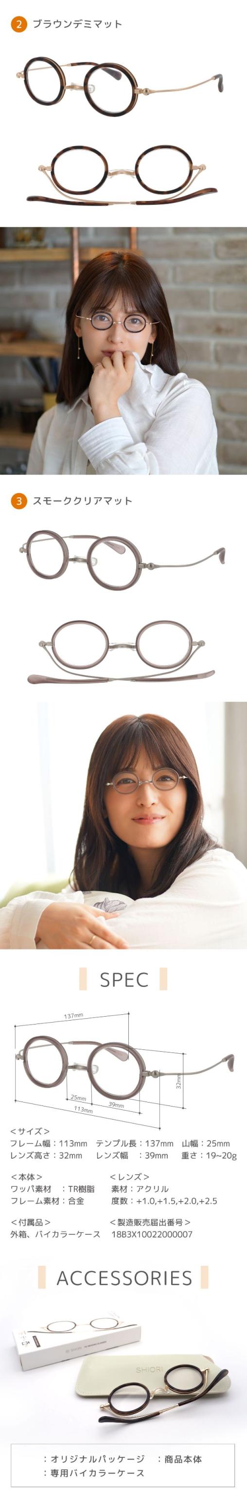 「栞 SHIORI」ブランドの折り畳み式リーディンググラス。