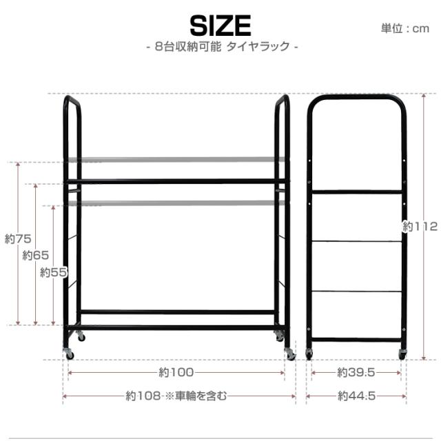 タイヤラック 8本 タイヤスタンド タイヤ 収納 タイヤ収納ラック タイヤ収納 タイヤ収納 ラック タイヤ 保管 夏 冬 物置 倉庫 冬タイヤ 夏タイヤ スタッドレス スペアタイヤ タイヤ交換 キャスター付き 4本 送料無料